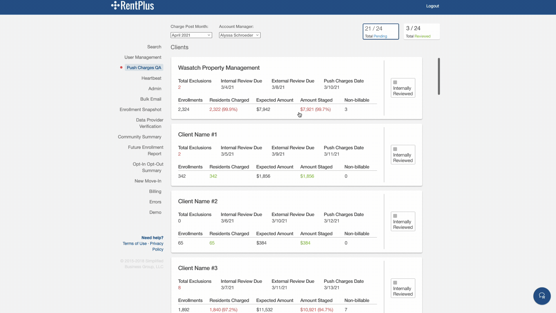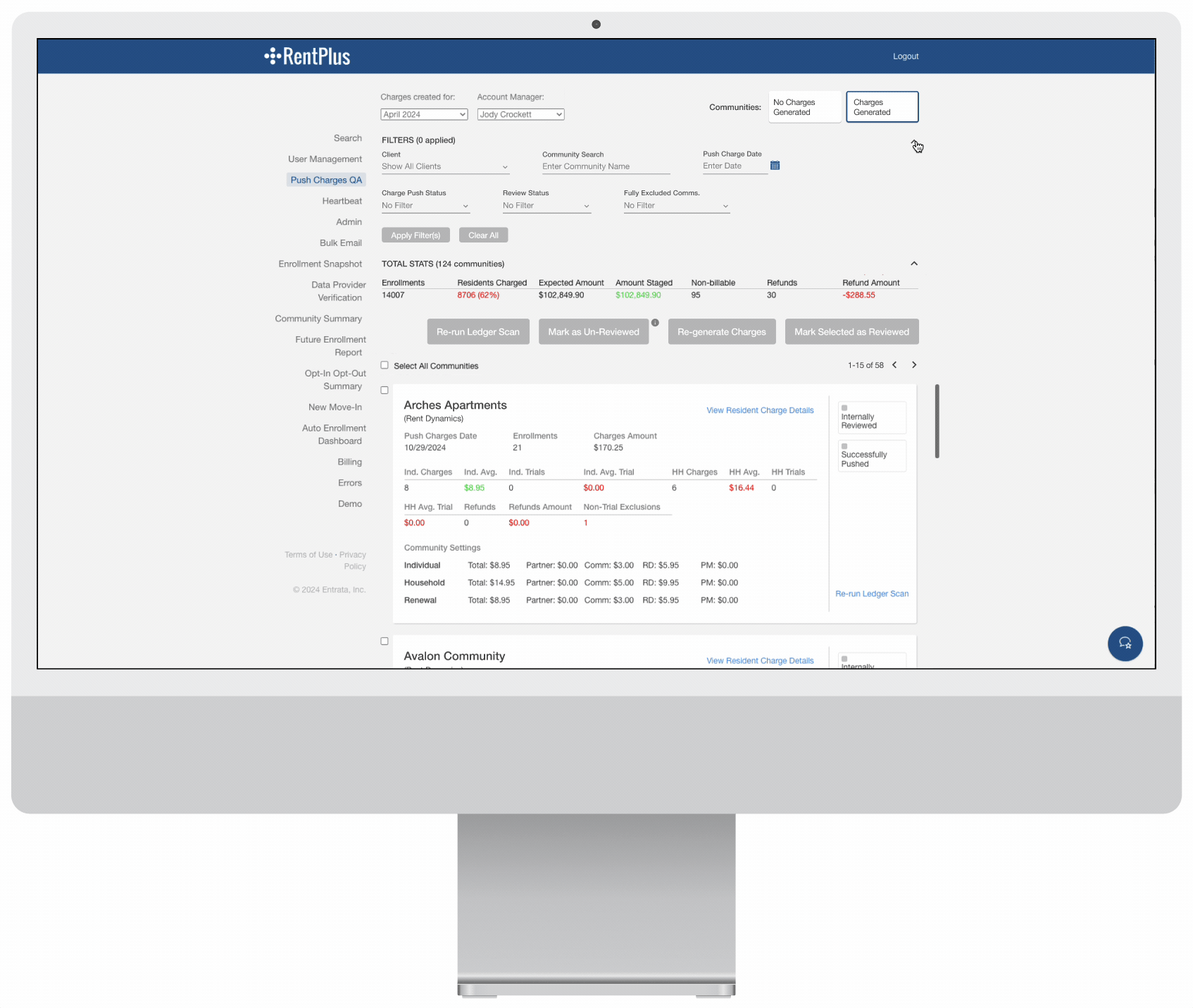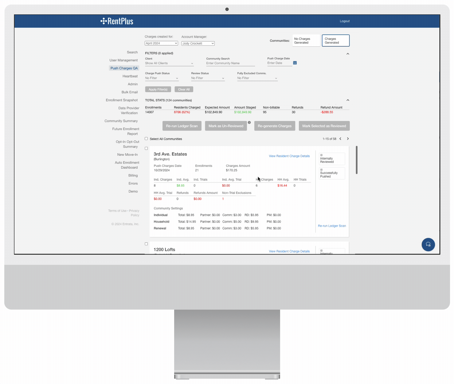 Account Managers need a way to quickly and confidently review charges being pushed to a growing number of clients’ ledgers, so we will deliver enhancements to the existing QA process that takes into account scale to achieve accurate charges and insure payments are being collected from enrolled residents.